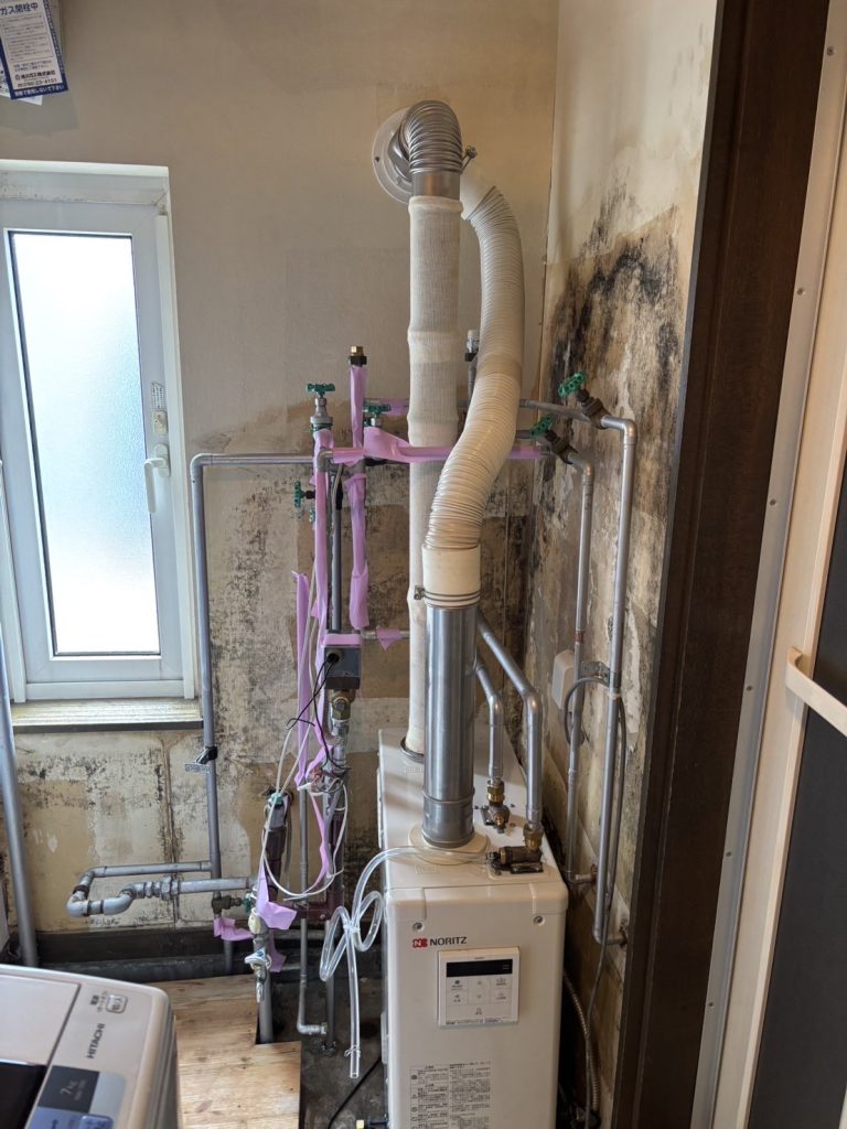 給湯ボイラー脱着のついでに、入り組んでいた配管等をスッキリさせてみました。