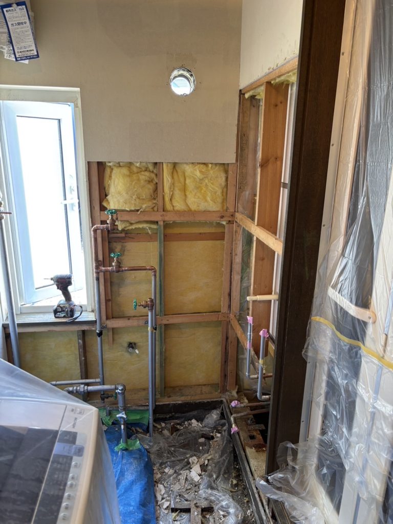 今回は脱衣所のクロスの貼り替え作業の様子をご紹介します。